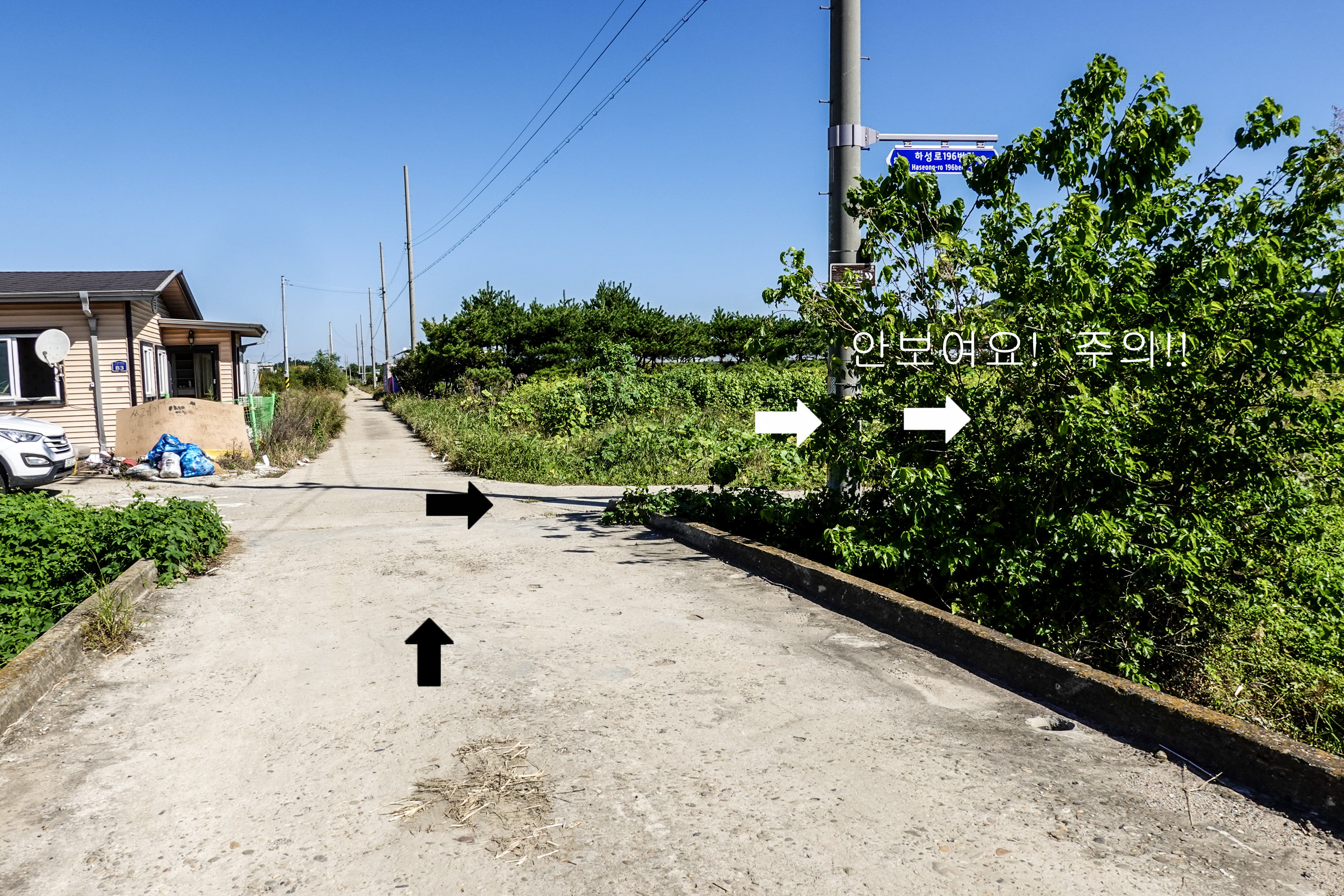 ① 푸름주말농장 입간판에서 우측 봉성리 생태길 진입에 유의